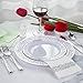 【Suitable For All Occasions】: Elegant and stylish clear plastic dinner plates are suitable for occasions such as weddings, anniversaries, birthday parties, themed events and high-end dinners, and through their embellishment, monotonous banquets also become more stylish.