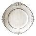 【Size and Material】 Measures 13", made of plastic, this charger plate features an antique white color accented with distressed markings and embossed edges.