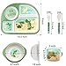 Toddler Kids Dinnerware Dinosaur 5PC SET: Eco-friendly bamboo fiber plate,bamboo bowl,infant feeding cup,bamboo baby spoon,bamboo fiber prong/fork.All dinner sets are perfect size for small hand and little baby. Suitable Age: 3-12 years old.