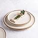 EXQUISITE DESIGN: Our beautiful dinner plates are designed with round rims accented with a fine gold mist border. The wide rims help prevent spills that may otherwise stain your tablecloth during meals. The classic design makes this a perfect product to complement any color scheme and table setting design