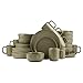 RUSTIC STONEWARE - For every day dining, this unique olive green speckled dishware is the perfect touch to your farmhouse or neutral colored kitchen and is sure to make a statement at all your meals. The modern low profile plates allow the entire surface area of the plate to be used for plating food.