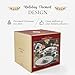 Seasonal pattern depicts a decorated Christmas tree, colorful gifts, and holiday greens