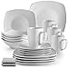 HIGH-QUALITY PORCELAIN: This sophisticated, premium-quality white dish set has the right balance of weight and size, making family mealtimes extraordinary for years to come. Our square dinnerware set is microwave and oven safe, making cooking simple and quick. Note: Handle with care, as the plates and bowls can get hot when placed in the microwave.
