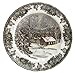 LODGE STYLE: Features a tan reactive glaze with a hand drawn sketch of 4 different animals: bear, moose, duck, and deer. Each shape has the same animal.