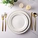 Deep and Perfect Size: This set of dishes is perfect for everyday use. you will love that the plates are shaped similar to a bowl. It gives you a good edge to keep food on the plate. Our plates are designed to create a classic and minimalist table setting. Their shape makes them easy to handle, and they stack neatly in your cupboard or shelves, taking up minimal space. This set would be great as a gift or to keep for yourself.Looks pretty and elegant. Ivory color is nice.