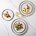 【UNIQUE AND SCRATCH RESISTANT】Our plates feature a unique and beautiful design achieved by firing them with two different glazes. The reactive glaze ensures that each plate is one-of-a-kind. Additionally, our all-natural reactive finish is extra strong, preventing scratches from your utensils. The glaze also creates a beautiful color on the surface, making your food look even more delicious. Please note that due to the natural finish, the color of the plates may change slightly depending on lighting.