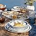 Includes (4) dinner plates, (4) accent plates, (4) all-purpose bowls, and (4) tumblers