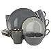 ◈A STUNNING ACCENT TO YOUR TABLE◈ The Elama Tahitian Grand 16 Round Stoneware Dinnerware Set in Assorted Solid Gray