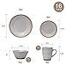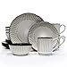 Service for 4, includes 4 of each of the following: 11” Dinner Plates, 8.5” Dessert Plates, 5.9” (21 Fluid ounce) Deep Bowls, and 18 OZ Mugs. This reactive glaze stoneware dinnerware set is dish sets for 4, and great dishware sets for home and kitchen.