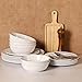 VINTAGE DINNERWARE: The 12 piece collection includes 4 dinner plates (10.5”), 4 salad plates (8.5”) , and 4 individual soup/cereal bowls (6" x 2.5") . Our vintage-inspired set are perfect for snack, salad, noodle, pasta. Throw away those flimsy paper plates and replace them with this Rustic Ivory dinnerware set.