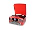 More Function: 33 , 45, 78 RPM selectable (included 45-RPM adapter) playing, AUX in,LCD Screen backlight,With CD player and Cassette deck,And with AM/FM radio, you could listen the channel you like