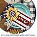 Patriotic Tea Towel: These kitchen towels are crafted from microfiber with double reinforced stitching for long-lasting durability. The fabric is strong but easy to fold and while they’re highly absorbent for soaking up water quickly, they’re also quick to dry.