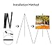 [Easy to assemble display easel] easels for display design components. With elastic inner rope, easel stand for wedding sign can be quickly followed up and used instantly whenever and wherever. Black easel stand for wedding sign folding clips make it easy to open and contract. When the sign easel stand wedding not use, just pull the fold at the node out, you can put away, very convenient and practical.