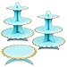 ❤Sturdy Cupcake Stand: The blue cupcake stand dessert plates are made of the thick paper material is used to create a three-layer stable structure, which makes the cardboard cake stand more stable and more durable. Not easy to be crooked after assembled.Will stay and hold food firmly.