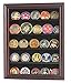 PREMIUM QUALITY – Unlike competing products that are made of veneer and plastic . DisplayGifts Military Challenge Coin Display Case is MADE OF solid wood with Anti-fade lacquer finish which is durable and Everlasting. Scratch-Resistant Real glass panel is superior to plastic or acrylic. VELVET felt backing with one gold plated anti-theft lock. Wall mountable, with metal bracket already on back. Each row shelf has TWO LINES GROOVES so that it can display up to 60 standard size challenge coins.