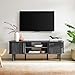 SPACIOUS TV STAND - Offering ample storage space, this TV stand accommodates TVs up to 65" and boasts a shelving area concealed by sliding mesh doors with cable management holes for added ventilation