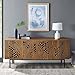 SPACIOUS DISPLAY STAND - This buffet table features three spacious drawers and two open shelving units that are perfect for both storage and display. Sliding rattan doors conceal media essentials