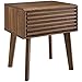 Product 2: WOOD SIDE TABLE - This end table features a durable particleboard construction and boasts a beautiful walnut wood grain veneer with slatted detail along the full-extension drawer for added interest