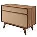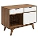 SUPERIOR CONSTRUCTION - Sitting atop tapered legs, this retro media stand features a particleboard frame with walnut grain laminate, and white lacquered full-extension glide drawers for extra storage