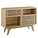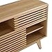 Product 2: SPACIOUS STORAGE - Slatted sliding doors conceal adjustable shelves on both ends, and a center glide drawer provides space for loose media accessories. Includes a center shelf for storage as well