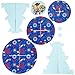 The cupcake stand features a snowflake design on a purple background and white snowflakes on a blue background around the edge of each tier