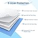 SUPERIOR LEAK PROTECTION: Featuring an efficient five-layer construction. Each disposable incontinence bed pad comprises a super absorbent polymer core engineered to rapidly absorb liquid. A polymer hydrophobic waterproof backing sealed on all four sides prohibits leakage from the bottom and sides, even under pressure.
