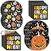 PACK INCLUSION - This bundle includes 8 square dinner plates (9"), 8 dessert plates (7") and 16 luncheon napkins (6.5"). Each piece is black and pastel with adorable skulls and pumpkins along with "Happy Halloween!"