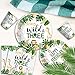 【 Wild One Birthday Decorations】Safari party decorations for one year old birthday included 24pcs 9'' wild one plates, 24pcs 7'' jungle party plates, 24pcs paper napkins, 24pcs Jungle cups, for kids first safari birthday decorations