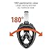 180°PANORAMIC VIEW- Different from traditional snorkel mask, the full face design allows you to breathe comfortably through your mouth or nose while snorkeling,unencumbered.The flattened large lens reduces underwater distortion for the best viewing experiences.