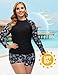 ❤❤【Rash Guard Swimwear】Tankini bathing suits for women long sleeved rashgaurds for the sun protection, UPF 50 fabric protect you from the sun. UV blocking thin raglan sleeves swim tops with built in bra soft chest pad with no rims to provide extra support. Swim shirts for women, tankini Rashguard cutout backless bikini with boy shorts. Modest muslim swimsuits for women. High leg cut medium coverage behind the bottom. Sexy floral printed, a must-have athletic swimsuit for beach getaway!