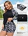 Two Piece Rashguard Swimsuit: Rashguard Shirt features with crew neck and raglan sleeve with color block design makes it more flattering and stylish; High Waist Bottoms in vintage leaves pattern match with the shirt, you do not have to consider how to choose a suitable shorts.