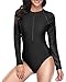 Long Sleeve Swimsuit: Sleek one piece design with black color, making you stylish and charming while swimming, surfing, diving, wakeboarding, stand up paddle and water yoga.
