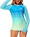 🏄♀️UPF 50+ Rash Guard Features - Sun Protection, Blocking Harmful Ultraviolet UVA and UVB rays Swim top with Raglan Sleeve and Gradient Color Print.