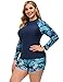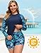 Women Boyshort Swimsuit Sets: Rashguard shorts in vintage leaves pattern match with the swim shirt, you do not have to consider how to choose a suitable shorts.