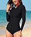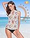 Women's Long Sleeve Rash Guard Material:Made of comfortable and lightweight fabric with UPF 50+ protective,this long sleeve swimsuit offer you necessary body coverage and provide breathability and moisture wicking,protecting you against rashes, abrasions and harmful UV Rays.