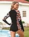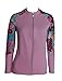 FRONT ZIPPER is easy on/off, crew-neck rashguard top featuring raglan long sleeves and floral/splice at both side