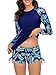 【3 Piece Swimsuits for Women】This printed long sleeve rash guard is a 3 piece swimsuits that includes a long sleeve swimsuit top, wire-free sports bra, high waisted swim capris. Made of quick-dry fabric, provides a super cozy feel, simple and sleek. Suitable for Ladies, Older Women, Girls, Teens, Juniors.