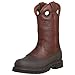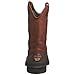 Steel-toe work boot featuring contrast tone bootie and pebbled leather shaft with pull-on cutouts and loops at scallop