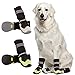 SECURE and ADJUSTABLE: Easy to put on / off. These dog shoes expands with a wide split seam opening and two adjustable and reflective velcro straps to ensure a tight fit, also make your dog safe at night