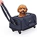 With retractable handle, detachable wheels, and velcro underneath the base, this rolling dog carrier brings a bump-free ride for your pet, and changes easily to a carrier bag or rolling cart as your need. Handy for pet transport.