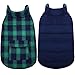 Reversible Dog Clothes: Double sided wearing dog winter jacket provides different styles for your choice. Plaid side makes your dog/cat stylish at Christmas, plain side can be as waterproof clothing. And this dog apparel is machine washable, anti-wrinkle, not easy to deform.