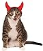 Devil horns pet costume accessory features plush red devil horns on elastic headband; easy, comfortable to wear