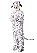 Black-spotted white fur jumpsuit has stuffed tail and back zipper