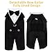STYLISH DESIGN & EXQUISITE TAILORING: Classic white shirt with black suspenders with fine white stripes. Button designs are easier to put on and off. One metal D-ring on the back is convenient for you to attach the leash. The bow tie of the same color also has adjustable fasteners. And the detailed cut with hem and line makes the tux more three-dimensional and straight.