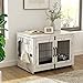 Panels cover the main components of the dog crate, giving the crate more of an interior-appropriate, furniture like appearance
