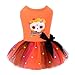 【Skull Dog Dress】Halloween dog dresses for small dogs girl with orange black purple tiered soft tulle hem, with skeleton with wreath pattern on back. The pet small dog dress is orange color, princess style. With the funny cute dog halloween costumes clothes, adds charm to your fur baby. Fall dog halloween clohtes recommended for female dogs. It's a dog outfit for chihuahua, yorkie, pomeranian. Disfraz para perros,Disfraces para perros