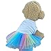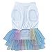 Sweet girl dog clothes for small dog is designed with white vest style on the upper part and the skirt is colorful tulle gauze, very cute and stylish, your pet will be more charming and attractive in this summer dresses for dog