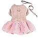 Pink harness dress with D-ring and attached leash, tulle layer with bling sequins presents a princess look. Pretty in any kind of movement.