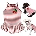 ❤【Special Design】This classic striped red pet dress has a cute cherry fruit pattern that is purely hand-embroidered, which means that every piece of our dog's outfit is unique! Besides, Dog girl dress is made of 100% cotton. Soft and breathable dog summer skirt. Lightweight and super friendly to sensitive skin.