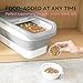 【MOISTURE-PROOF】This pet food container has a sealing clear lid with a slide function, allows you to easily monitor the remaining contents. Moreover, the slightly raised foundation guarantees that dry food stays above damp surfaces.